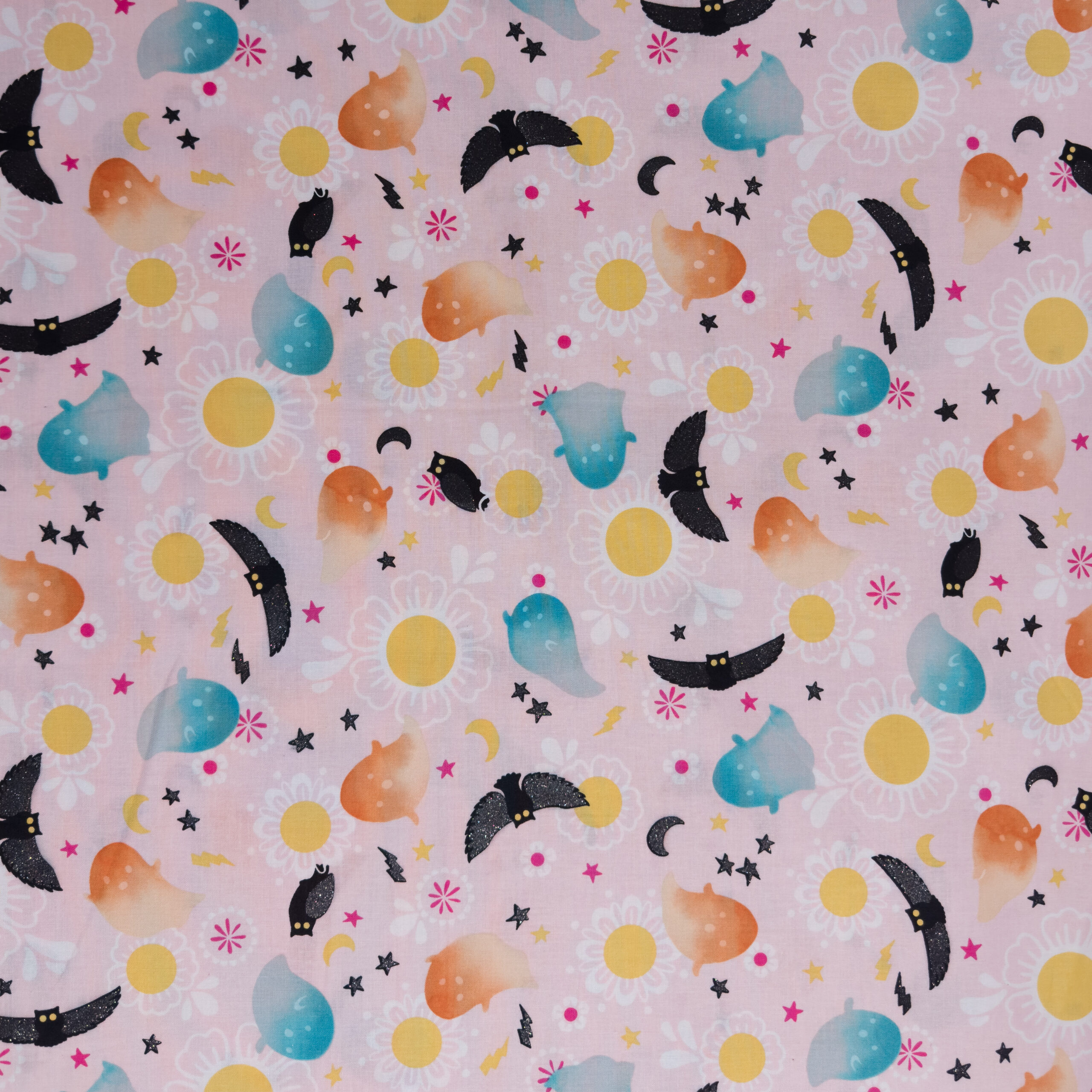 Robert Kaufman’s Boolicious print is full of Halloween charm, with friendly ghosts, pumpkins, and playful details (like glitter owl wings) that little ones will love. Printed on soft quilting cotton, it’s perfect for trick-or-treat bags, costumes, quilts, and festive décor.