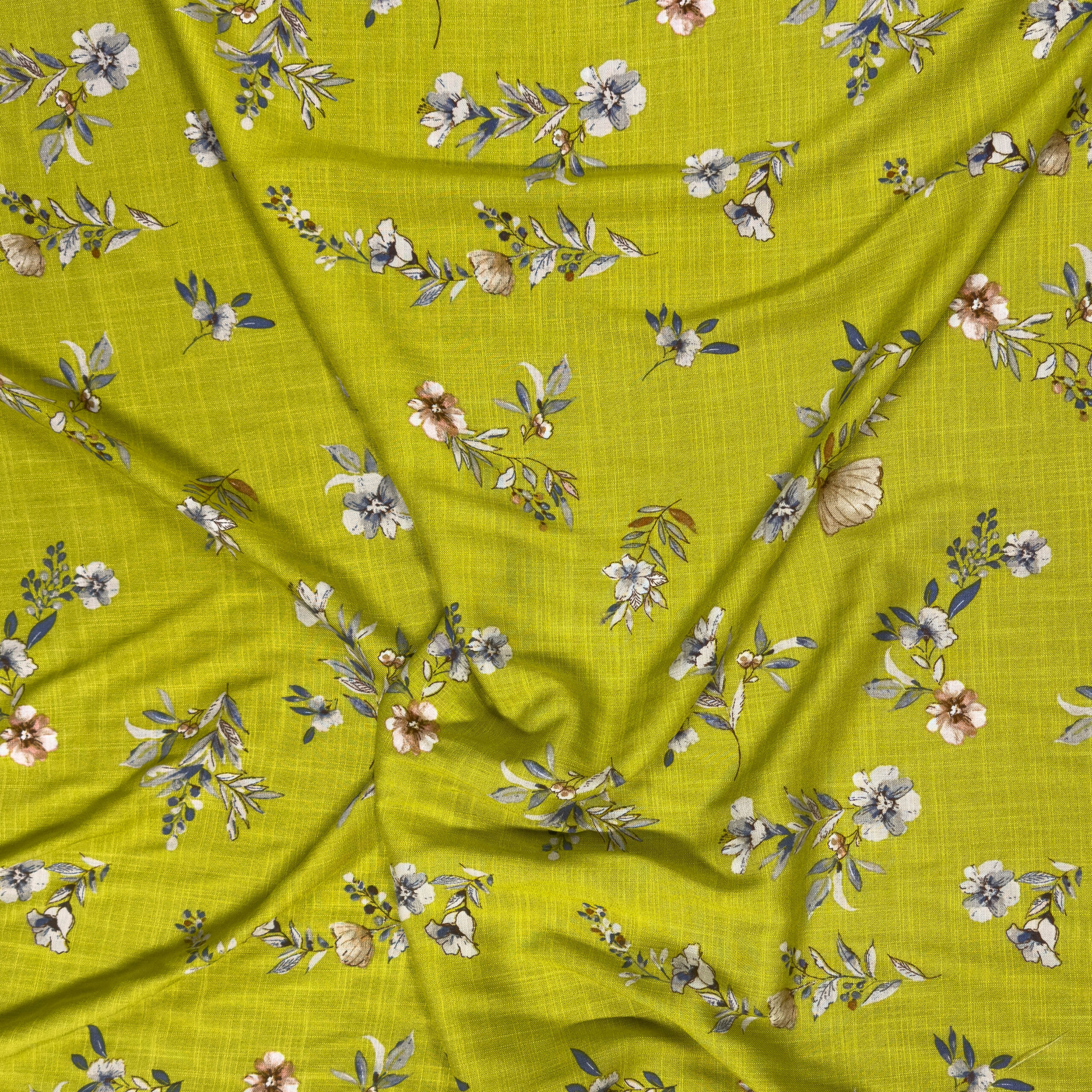 This 100% rayon fabric offers the look of linen with a softer hand and a more approachable price point. Woven with a subtle cross-hatch texture, it mimics the natural slub and visual depth of linen paired with the fluid drape for which rayon is known. Lightweight and breathable, it’s an easy choice for warm-weather garments such as breezy tops and pants or dresses and skirts. Lighter colorways may require a lining.