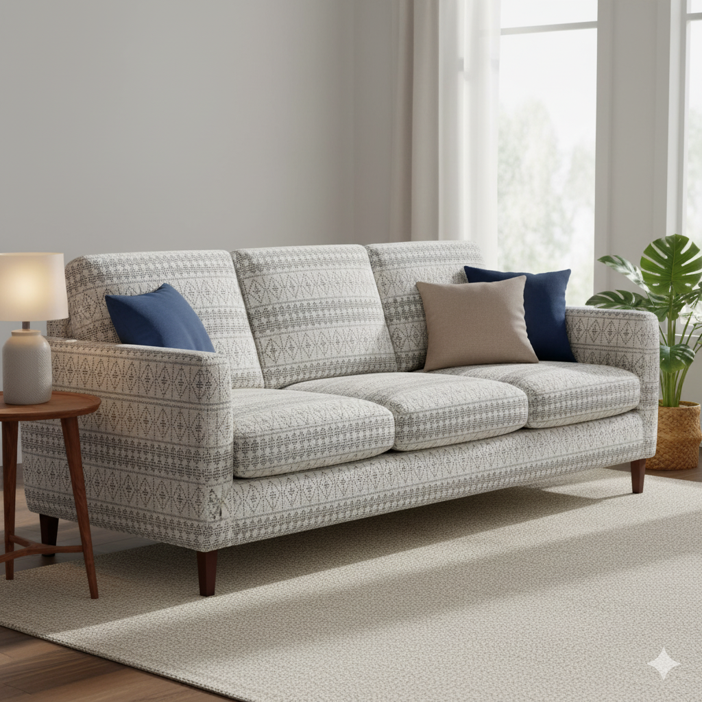 Ivory and Blue Geometric Design Upholstery
