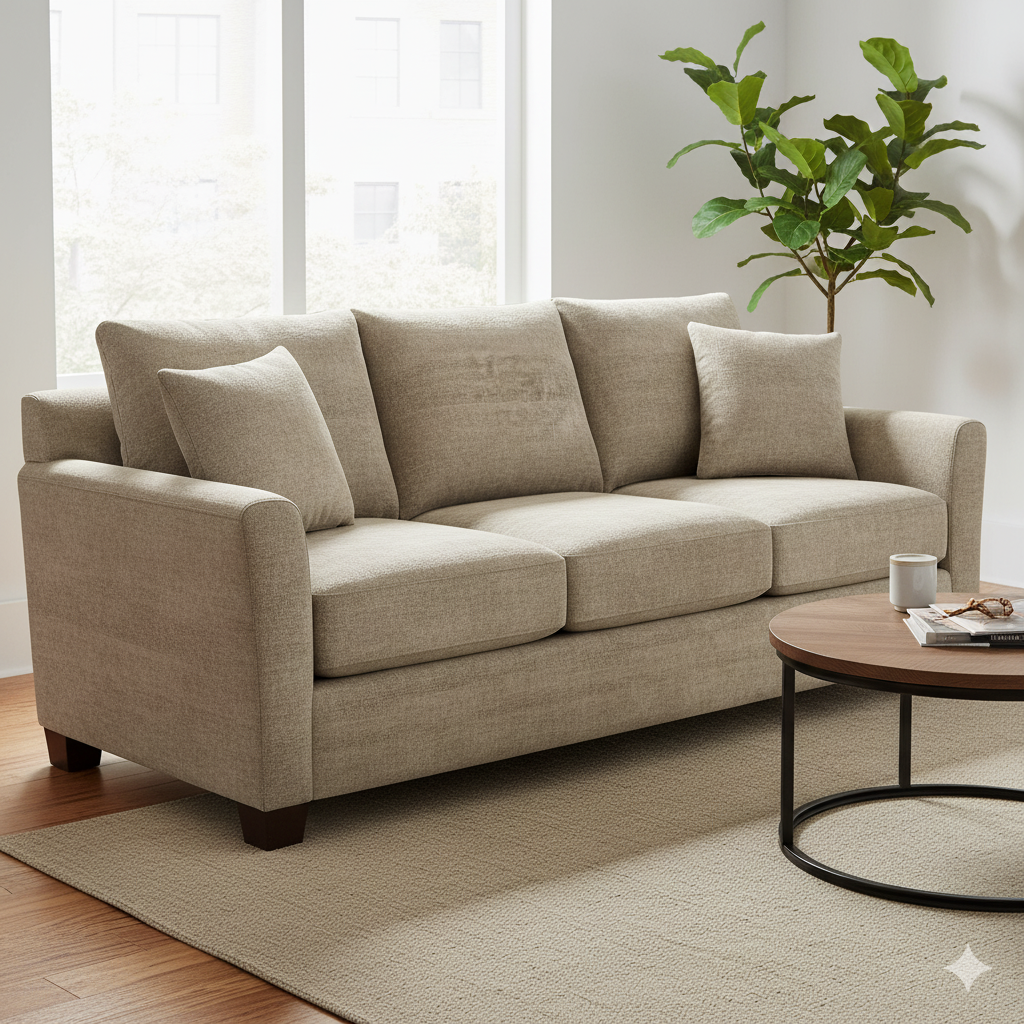 Taupe colored textured upholstery. Natural blend. Our upholstery fabrics are upcycled from high-end San Francisco workrooms, giving them a second life while keeping beautiful textiles out of landfills. Because these are sourced as deadstock, the exact fiber content is often unknown. To help guide your projects, we perform a traditional burn test to provide our best educated guess on fiber composition—but please note that results are approximate rather than guaranteed.