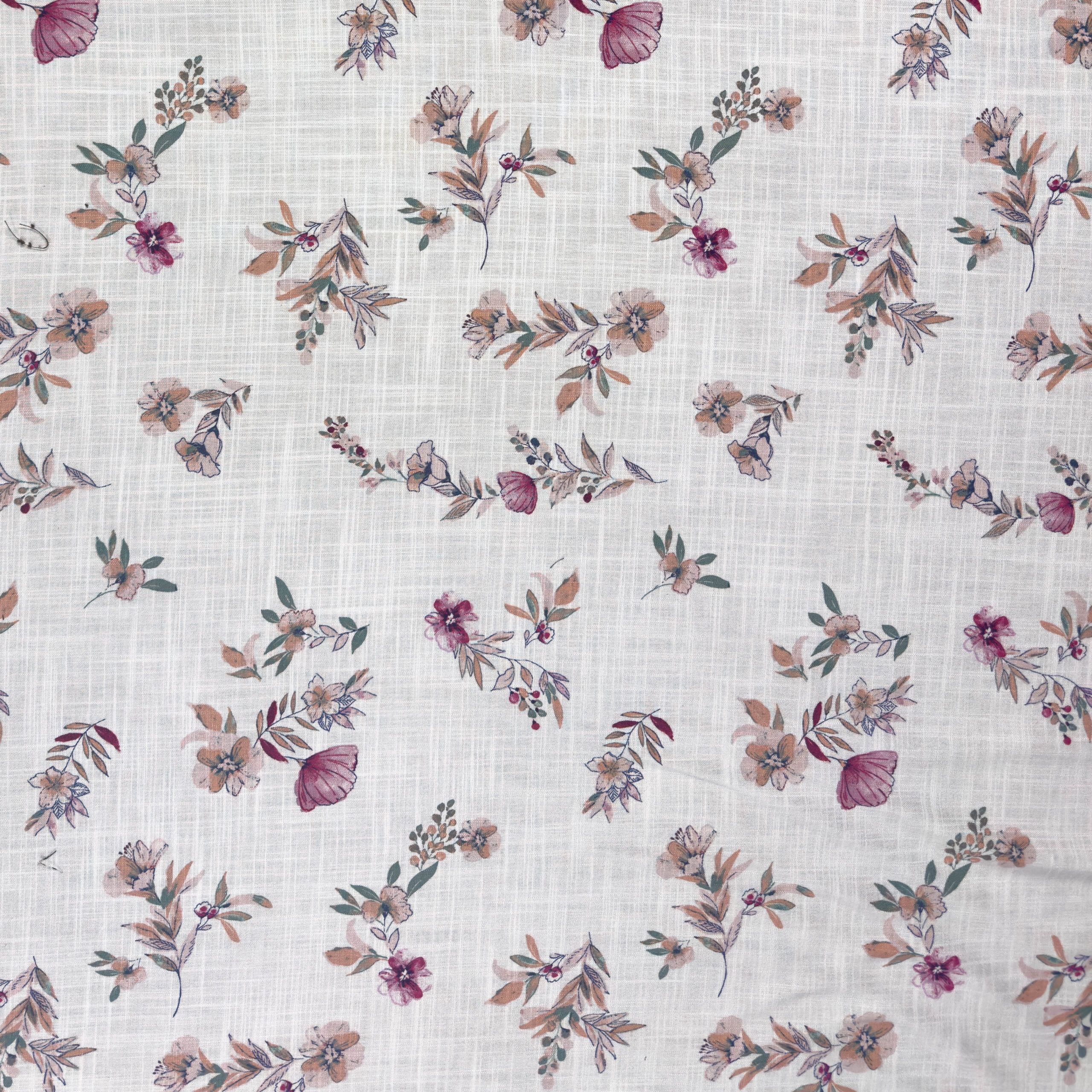 This 100% rayon fabric offers the look of linen with a softer hand and a more approachable price point. Woven with a subtle cross-hatch texture, it mimics the natural slub and visual depth of linen paired with the fluid drape for which rayon is known. Lightweight and breathable, it’s an easy choice for warm-weather garments such as breezy tops and pants or dresses and skirts. Lighter colorways may require a lining.
